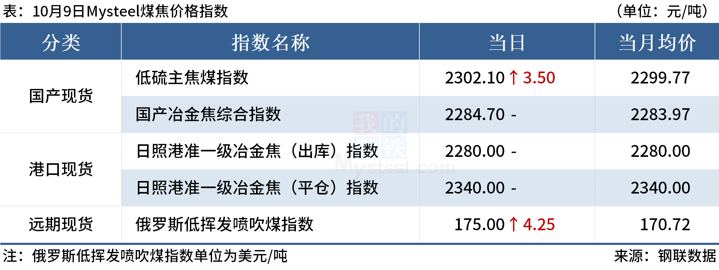 ◎山西4.3米焦炉产能淘汰情况调研:目前山西省在产焦化产能11850万吨,计划淘汰焦化产能2856万吨,新增焦化产能2213万吨。截止2023年10月8日,已淘汰产能1032万吨,若按通知执行,10月份将淘汰4.3米焦化产能1824万吨,2023年已新增焦化产能1263万吨,四季度预计新增焦化产能950万吨。全年净淘汰焦化产能643万吨。详情>>