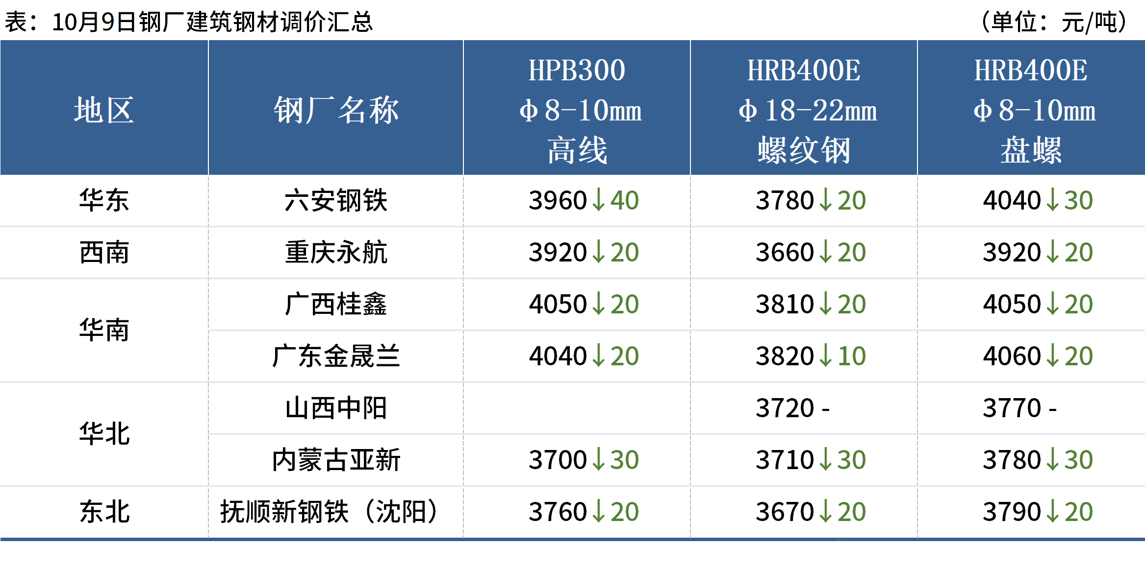 ◎10月7日起陕西区域流通钢厂陆续发声,将调整螺纹钢规格组距价差,以Φ20规格为基准,Φ22调整为加价30元/吨以及50元/吨,Φ18、Φ25调整为加价30元/吨、50元/吨以及80元/吨,其他品规加价不变,四级钢对应品规加价同幅调整。