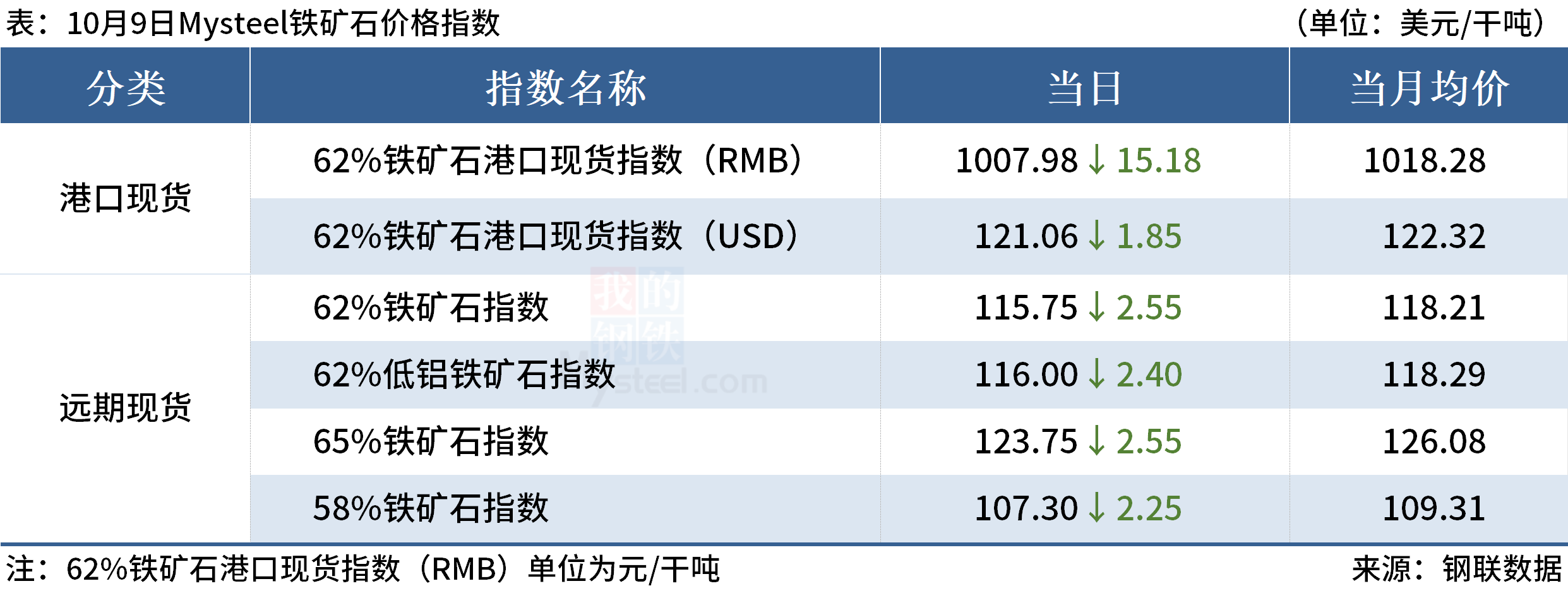 ◎10月2日-8日,中国47港铁矿石到港总量2154.1万吨,环比减少305.8万吨;中国45港到港总量2035万吨,环比减少358.9万吨。详情>>