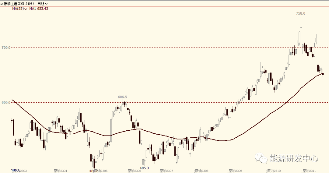 巴以地缘事件爆发后油价的表现来看,资金虽然给予了一定的溢价,但在过去一段时间的表现来看也明显降低了追涨油价的操作,供应端仍有支撑油价的题材,不过资金追涨热情明显消退,最新持仓报告投机净多头寸已经开始回落,随着十一假期油价暴跌预计会有更大面积的离场表现。EIA短期能源展望下调了对2023需求预期预测,将2023年全球原油需求增速预期下调5万桶/日至176万桶/日。(此前为181万桶/日),主要是将美国国内需求进行了下调,预计2023年美国原油需求增速为6万桶/日,此前为13万桶/日。这印证了近期需求疲弱表现,凌晨API数据显示库存大增1294万桶,远超预期的130万桶,另外汽油继续累库,利空数据盖过了库欣库存及柴油库存下降的影响,油价随后继续回落。值得警惕的是月差大幅下挫,这意味着资金对供应紧张预期也在发生变化。市场情绪继续走低,将继续下寻支撑。目前原油市场仍面临较为影响因素交织的复杂局面,注意节奏把握。
