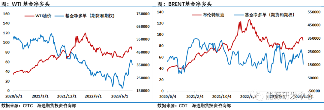 十一假期归来油价就进入了大幅起落的阶段,而地缘因素历来是导致油价出现突然异动的重要原因,就在巴以冲突爆发一周时间市场普遍形成了巴以冲突不会对原油市场形成重大冲击之后,油价的突然飙涨再次打了不少投资者一个措手不及。周五油价暴涨5美元,最大涨幅近6%,这样的拉升显然引发了很多投资者不适,尤其是根据最新持仓数据显示截止10月10日当周布伦特、WTI原油净多头寸合计大幅减持了超10万手,显然在10月初资金对油价后市判断发生了明显的转变,即便是巴以冲突出现虽然让市场紧张但也没有引发市场过度担忧。不过周五随着以色列给出24小时的最后期限,要求加沙的所有平民撤离该市并迁移到南部,这种可能引发人道主义危机的局势升级再次引发了市场避险情绪爆发,原油、黄金等出现大涨。基金看着自己刚刚大幅减持超10万手净多头的行动,陷入了沉思……