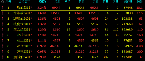 早盘收盘,国内期货主力合约涨跌不一,SC原油涨超2%,低硫燃料油(LU)、液化石油气(LPG)、苯乙烯、工业硅涨超1%。跌幅方面,焦炭跌超3%,焦煤、甲醇、丁二烯橡胶、淀粉、棉花跌超2%。