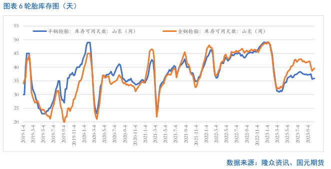 从下游行业来看,国庆节后,轮胎市场整体开工率较前期呈现明显的回暖,给与上游一定正向反馈。截至2023年10月12日,半钢胎和全钢胎装置开工率分别维持在72.49%以及64.25%,周环比分别上涨3.18和14.35个百分点,同比分别上涨5.34和8.09个百分点。目前山东地区半钢胎样本企业平均库存周转天数在35.92天,全钢胎样本企业平均库存周转天数在39.59天,周环比分别上涨0.3天和0.96天,但是远低于去年同期的45.67和46.25天。