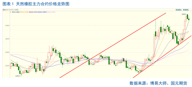 当前全球天然橡胶供应进入季节性增产旺季,产量存在上涨的预期,但是由于阶段性天气扰动,叠加海外工厂推迟船期,国内橡胶到港数量偏少,社会库存持续走低,供给端存在较强支撑。叠加消费旺季下,下游轮胎以及汽车行业的持续改善,市场看涨氛围明显。因此在价格持续低估的背景下,受盘面资金的推动胶价大幅上涨。但是考虑到后期国内外天气扰动略有降温,产量存在持续上涨的预期,或将制约后期胶价反弹的空间。