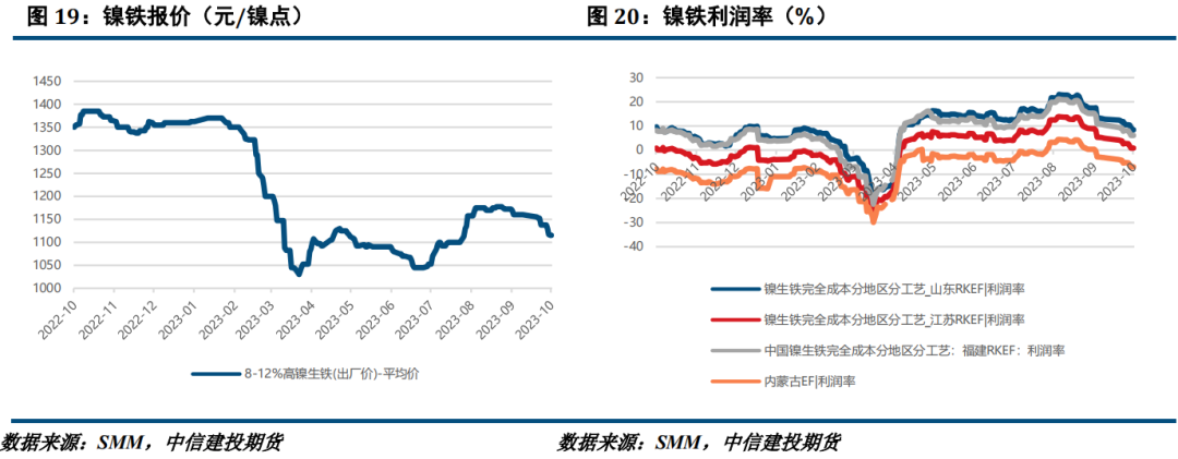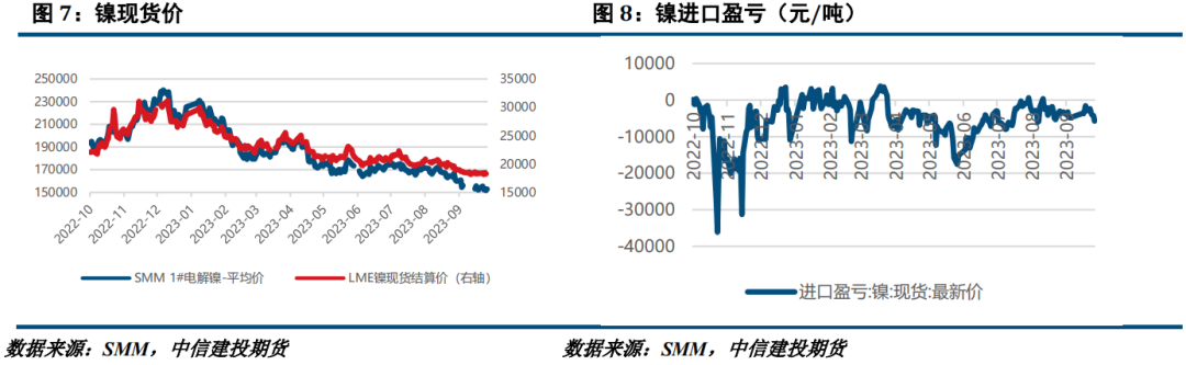 纯镍方面,弱需求、库存高等多重因素对镍价形成了明显压制,但是当前价格下转产电积镍已经亏损,短期下行空间或有限,但过剩逻辑下镍价中期看依然偏空。硫酸镍方面,受益于成本支撑,硫酸镍价格存在一定支撑,但受需求疲软影响,或将出现回调。镍矿方面,短期政策担忧解除,负反馈持续向上,预计矿价震荡偏弱运行。镍铁方面,下游需求不畅导致的负反馈正在不断施压铁价。不锈钢方面,不锈钢旺季预期落空使得需求短期看难有逆转,减产有所加剧,预计后市钢价震荡偏弱。