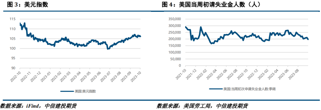本周美国公布的经济数据总体向好。美国9月零售销售环比升0.7%,预期升0.3%;核心零售销售环比升0.6%,预期升0.2%。美国9月工业产出环比升0.3%,与预期持平。美国上周初请失业金人数为19.8万人,预期21.2万人。近期包括美联储主席在内的多位美联储官员发言表态,总体鸽鹰参半。美联储主席鲍威尔表示,通胀仍然过高,不排除数据太好会进一步加息,但也强调风险和债市收益率上涨收紧了金融状况。此外,鲍威尔还指出,债市收益率上升可能意味着无需更多加息。在美债收益率连创新高的背景下,市场预期美联储将不再加息。