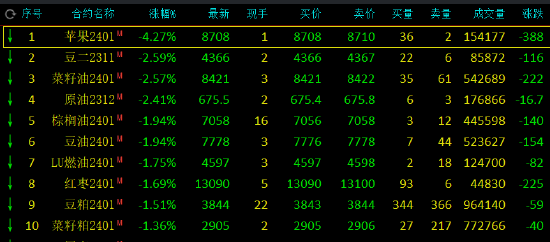 早盘收盘,国内期货主力合约涨跌互现。焦煤、碳酸锂涨超2%,焦炭涨超1.5%。跌幅方面,苹果跌超4%,豆二、菜油、SC原油跌超2%,棕榈油、豆油跌近2%。
