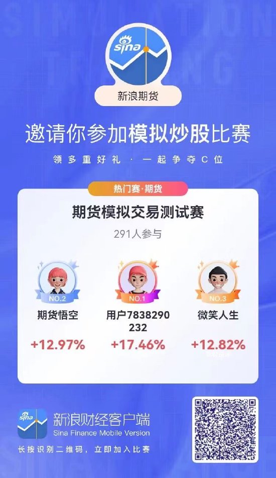 赛事主办方会围绕本次赛事定期开展丰富的奖励活动,在排名比拼之余,让参与者从更多维度参与其中,活动内容将在新浪财经期货频道及新浪期货微博实时更新。