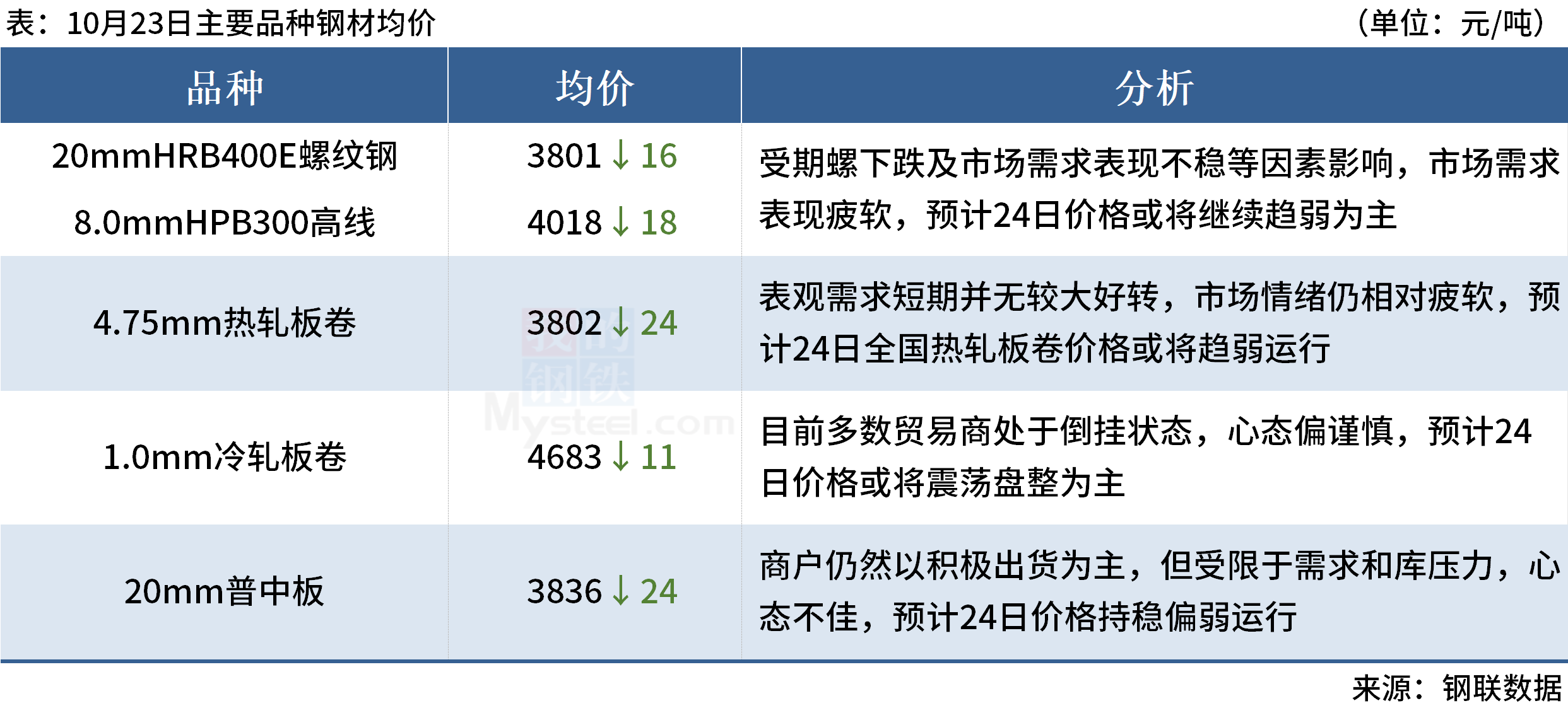 ◎10月23日,40家独立电弧炉建筑钢材钢厂平均成本为3861元/吨,环比上周五下降31元/吨。平均利润亏损109元/吨,谷电利润亏损11元/吨,环比上周五增加22元/吨。