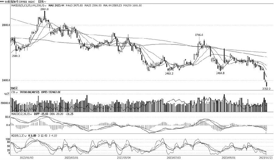 IH跌势有望趋缓。IH加权承压跳空下跌连续调整数日,量仓等指标有所分化。周一早盘小幅低开后偏弱振荡,盘中承压大跌,临近尾盘低位企稳。其中,主连合约较现货指数略有贴水,净基差波动显著收敛,期货走势较现货指数表现略偏弱。IH加权MACD指标绿柱明显放大,KDJ快线低位运行。主连合约较多减仓,远月合约多数加仓,较前两个交易日总体表现为加仓缩量下跌,短期市场弱势或有所转变。建议观望为主,日内可逢反弹谨慎短多。