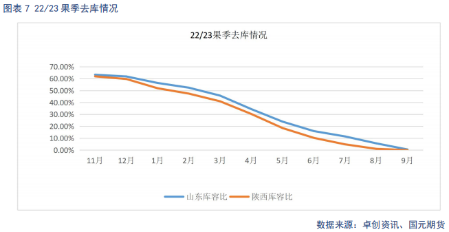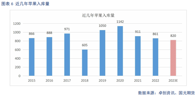 目前陆续摘袋入库,处于入库初期,当季库存数据尚未统计。但今年商品率不高,好果相对较少,入库量相较去年预计会有所下滑,预估在820万吨左右。综合近几年冷库出货情况来看,库存量在800万吨上下,利于苹果良性销售。本果季后期去库压力不大。但占比较大的一般货,过高的价格使贸易商采购较为谨慎,果农惜售情绪尚存,导致果农被动入库。后续仍需具体的入库及去库数据,如果去库速度不及预期,且果农货占比较大,将出现较大价格风险。