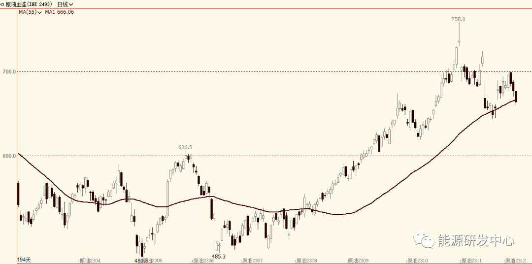 油价连续大跌,凌晨API数据显示美国原油成品油均有超预期去库表现,但利多数据只是给油价带来了较为微弱的反弹,显示市场看涨热情迅速消退,油价连续三天快速回调回吐了巴以冲突之后的大半涨幅。