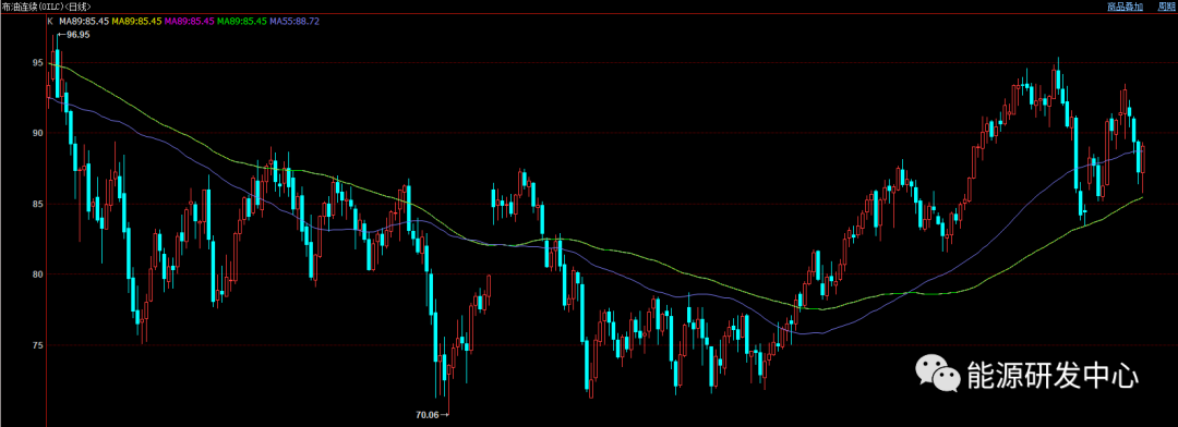 油价周三夜盘上演极限反转从日内低点反弹超3美元,连续快速回调后油价在高位区间下沿附近获得支撑,随着大部分地缘溢价被挤出,油价短线回调动作基本到位,夜盘油价短暂急跌之后走出止跌反弹行情。就像昨天判断当前原油面临的复杂因素下,油价将维持高位区间波动,继续破位连续大跌概率较小,部分资金也在连续回落之后获利了结,这缓解了油价下行压力。