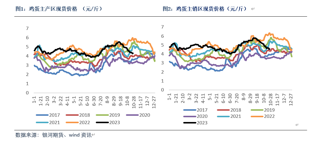 库存:10月份鸡蛋库存量较之前略有上升,且和往年同期相比也处于相对偏高的位置。10月份流通环节鸡蛋库存量平均在1.11天左右,生产环节的鸡蛋库存量平均在1.23天。整体来看,10月份天气较凉,鸡蛋容易保存导致库存量上升。此外流通环节库存量相对较高,主要是终端消费情况一般,拿货不积极。