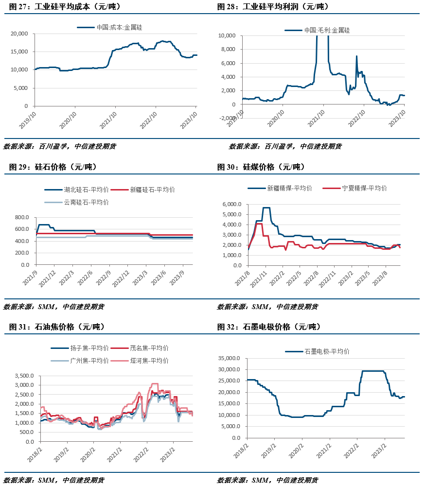 工业硅成本暂稳,还原剂、电极价格保持平稳,不过随着西南电价上调临近,后续工业硅成本将会抬升。利润方面,本周工业硅现货价格下调,工业硅生产利润走低。
