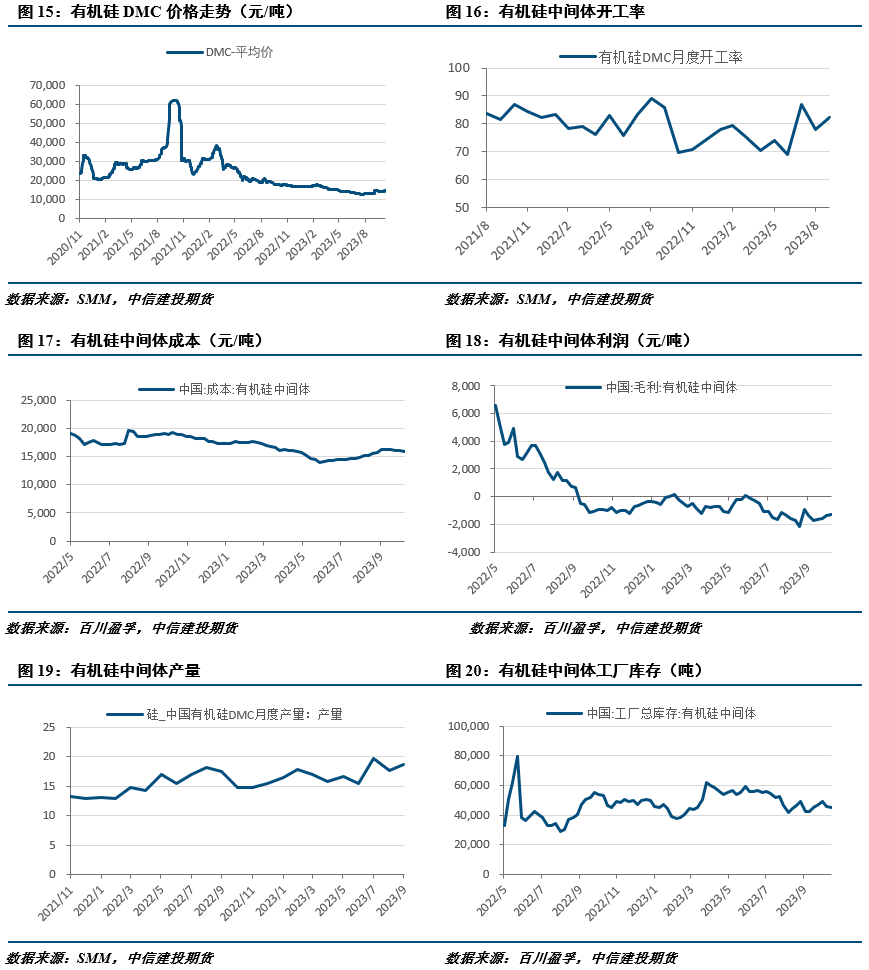 有机硅DMC价格暂稳,近期部分厂家开始检修,短期开工率下降,同时下游需求转淡,有机硅企业备货需求减弱,在工业硅行情弱势之下,采购亦显得相对谨慎。从后市来看,淡季已至,生产亏损背景下有机硅厂家加大开工动力亦不足,难以给工业硅需求带来有利提振。