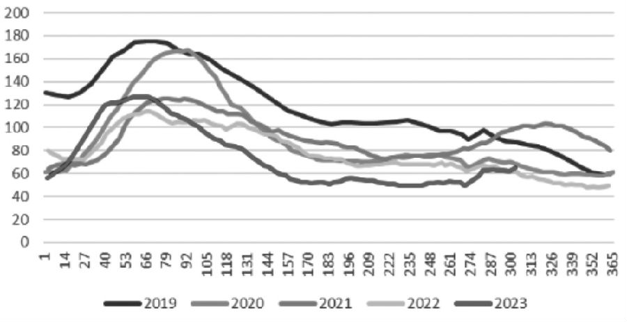 山东与江苏等地区电网11月施工照常,且行业交货量较大,使大多数龙头铝线缆企业订单排产至明年,但中小型铝线缆企业新增订单下滑而排产至11月底。整体上,铝线缆企业以按需采购为主,且通常采购3—5天需求量,或使铝线缆11月中上旬产能开工率持稳,而11月下旬和12月产能开工率趋降。