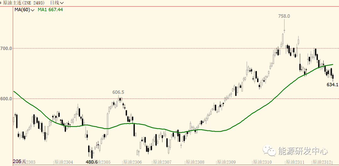 另外最近2个交易日值得关注的变化是SC原油走势明显弱于布伦特等海外市场,尤其是周一夜盘SC原油出现了大幅增仓下跌的情况,其表现明显弱于同期外盘表现,这是今年以来少见的局面,导致出现这一现象的原因一方面是近期国内炼油利润收缩明显,炼厂开工率及原油加工量回落,国内产业情绪低落有关。另一方面美元大幅走弱,同期人民币走强,汇率因素也是推动了跨市场油价涨跌幅差异的重要原因。总体来看原油市场士气低落,上涨驱动不足,但暂时还是很难改变油价高位震荡格局,预计接下来一段时间油价仍将保持高波动,行情仍易反复,注意节奏把握。