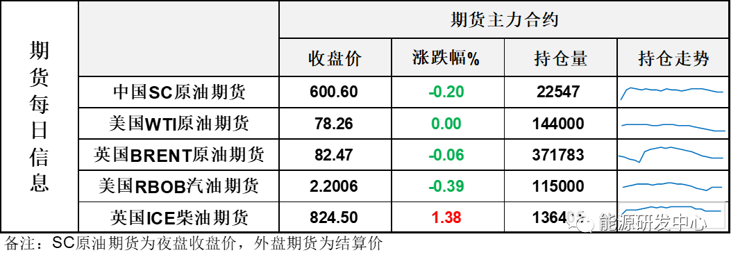 【1】WTI主力原油期货收跌3.45美元,跌幅4.27%,报77.37美元/桶;布伦特主力原油期货收跌3.57美元,跌幅4.19%,报81.61美元/桶;INE原油期货收跌4.48%,报610.4元。