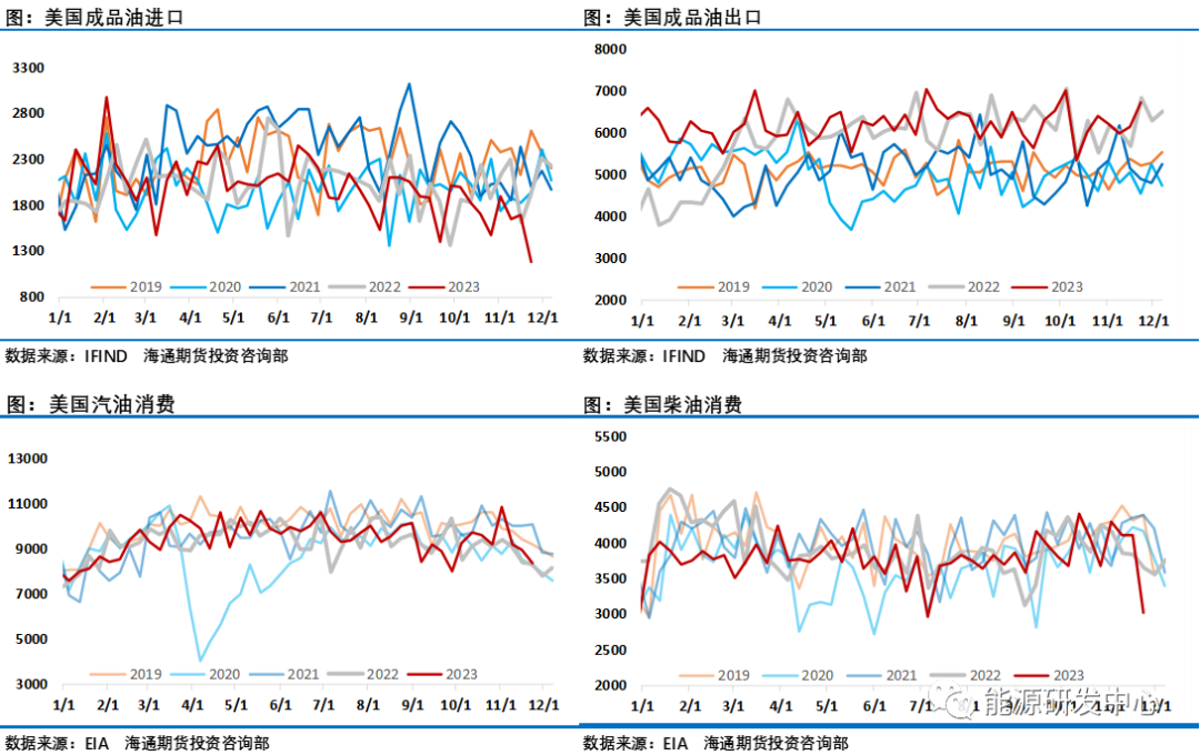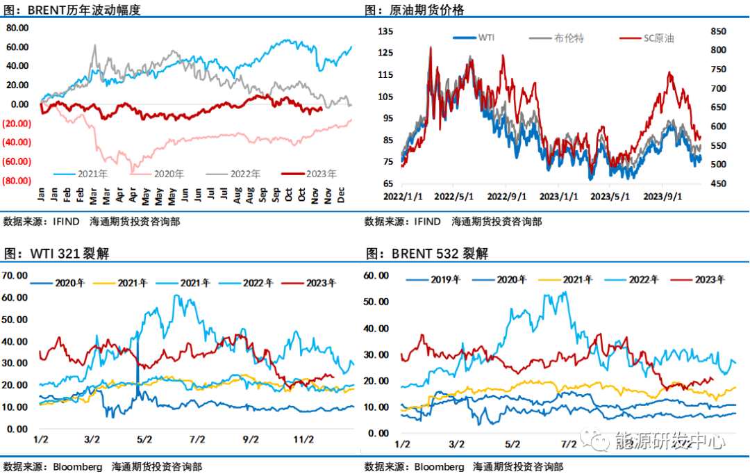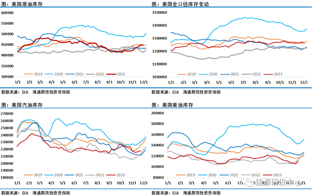 通过跟踪各大机构平衡表可以看出,进入四季度后原油市场供需缺口明显收窄,EIA数据显示原油市场库存持续回升,这也让投资者格外关注欧佩克+会在11月底的第36届欧佩克+部长级会议上达成什么样的减产方案来维护市场。而11月30日会议结束后油价从高点一度大跌超5%,显示了这次会议结果不能让人满意。就像三方机构睿咨得评价此次部长级会议的结果是该集团的主要成员国沙特阿拉伯的喜忧参半的胜利。积极的方面是会议结果显示欧佩克+成员国们各自宣布在明年一季度期间“自愿”减产220万桶/日,虽然局势混乱且内部分歧明显,在沙特努力下,还是赢得了一些欧佩克+核心成员国的支持,新的临时自愿减产措施延长到2024年一季度以化解供应过剩压力,这缓解了一季度原油市场大幅过剩的这一大利空。隐患是非洲成员国坚持自己市场份额的立场这一内部分歧没有解决,安哥拉石油部长拒绝了欧佩克分配的减产配额。该集团再次不得不依靠个别成员国的自愿减产以实施临时减产协议,而不是单方面商定在更广泛的欧佩克+集团削减,这绝对不是团体内部团结一致的好迹象。