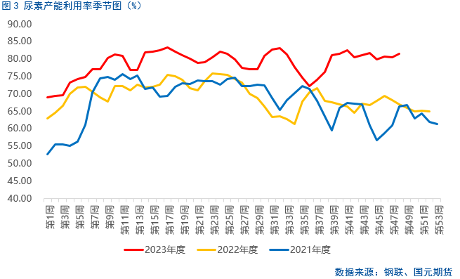 上周,尿素产量在保供稳价下温和上涨,但结合上半月山西限产停车,部分气头企业陆续停车,周内个别企业计划检修,尿素本周产量或将收窄。截至11月30日,国内尿素产量125.71万吨,较上周增加1.65万吨,环比涨1.33%;周均日产17.96万吨,较前一周增加0.24万吨;国内尿素分原料产能利用率来看,煤制尿素83.10%,环比涨1.08个百分点;气制尿素76.59%,环比涨1.05个百分点。