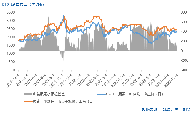 近期尿素期货主力合约印证了我们的预测,持续呈现震荡走势。在技术面上,尿素在2300关口上受均线系统限制,叠加基本面上多空因素交织,预期大概率呈现窄幅震荡。截至12月04日,尿素主力合约收盘价为2301元/吨,跌幅0.95%,单边持仓量为130776手,比上次周报截稿时减少了约7.08万手,单边成交量为218431手。目前山东小颗粒尿素现货价格为2420元/吨,基差为119元/吨。