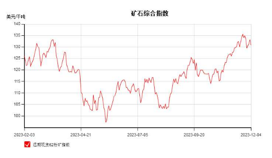 2023年铁矿石市场整体呈现不规则“V”型走势,四季度行情出现翘尾,价格波动区间有所收窄,整体呈现相对强势坚挺。全年最高点在11月中下旬达135.6美元/干吨,最低位在5月下旬97.5美元/干吨左右,截止12月初价格均值在118.4美元/吨。全年宏观刺激加政策预期较强,供需双强格局明显,支撑价格坚挺运行。影响2023年市场的主要因素有:海外宏观因素扰动、国内宏观政策预期拉动、政策监管影响、钢厂利润较差、钢材产量高位,成材下游需求季节性特征不明显,粗钢平控传言等市场情绪因素扰动。