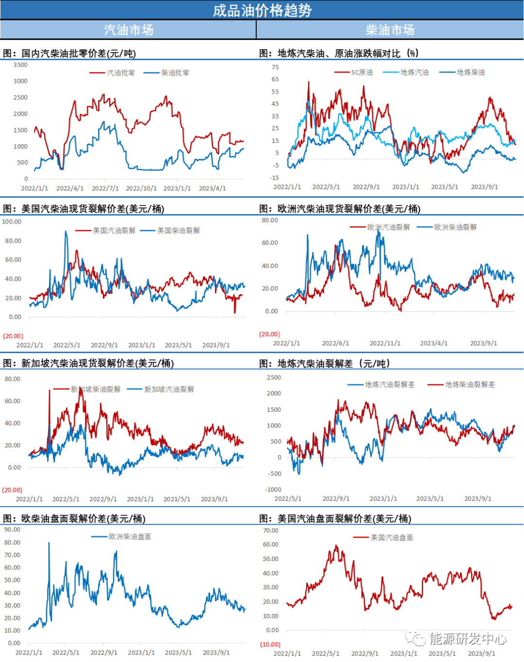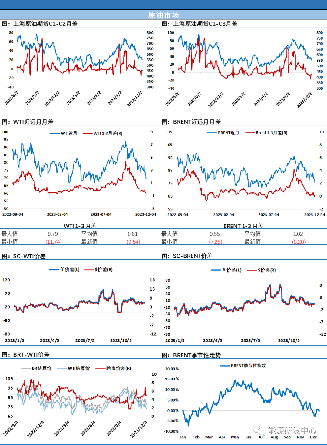 当周原油库存降幅录得2023年9月1日当周以来最大,结束此前连续6周的增加趋势。国内原油产量降幅录得2023年7月21日当周以来最大。美国至12月1日当周EIA战略石油储备库存为2023年6月2日当周以来最高。汽油库存增幅录得2023年9月29日当周以来最大。