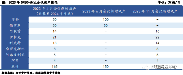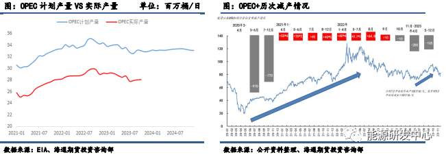 2023年11月30日第36届OPEC+部长级会议上宣布欧佩克+成员国们各自宣布明年一季度“自愿”减产,总规模合计219.3万桶/日。这个结果引发了市场的普遍怀疑,也给2024年原油市场带来了不确定性。因为是自愿减产,而不是联盟约束下的强制性统一减产行动,对各国约束力较差,因此投资者担心自愿减产的执行程度。虽然考虑到核心成员国在沙特2023年的自愿减产里基本都是100%执行,且沙特警告了其他成员国要提升自己的减产执行力度,预计其他成员国家在自己公布配合自愿减产的声明下还是会执行大部分减产任务,但自愿减产的方式还是给市场带来了不确定性,投资者对此还是充满了怀疑,这也让2024年的供应端有明显的不确定性,需要观察各成员国的实际执行力度。欧佩克+联盟将在2024年一季度减产达到了585(200+166+219)万桶/日的规模。这也意味着着原油市场有充裕的备用产能等待回归,一季度之后原油市场供应端仍将继续保持高弹性,如果市场回暖明显,各产油国都将积极准备减产部分的原油回归。而如果供需疲弱,可能需要欧佩克+继续深化减产,虽然沙特、俄罗斯等均有如有需求将继续深化减产的相关表态,但是在欧佩克+已经有大幅减产,内部分歧增加的前提下,后面的减产合作将面临更大挑战。