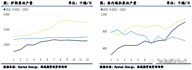 然而我们发现,虽有沙特实施的自愿减产,前期OPEC+的产量并没有断崖式下降,三大机构的月报趋向于收窄去库幅度的预期。这部分原因是基于OPEC+成员国内配额豁免国产量的增长,其中,较为显著的是伊朗和委内瑞拉的原油产量都有比较大幅的增长。根据睿咨得统计伊朗石油产量从4月起产量就有大幅走高,从4月的336万桶/日增长至最高380万桶/日并基本保持在这一水平;委内瑞拉则是从9月份的80万桶/日增长至近期的95万桶/日。更需要注意的是近期美国众议院通过了加强伊朗制裁的方案,将对违反美国制裁的伊朗石油出口进行加强措施,并对外国港口和炼油厂实施制裁。如果这项立法成为法律,其效力尚不明确。尽管国会可以通过制裁立法,但这类措施通常附带国家安全豁免条款,允许总统在执行法律时行使自由裁量权。