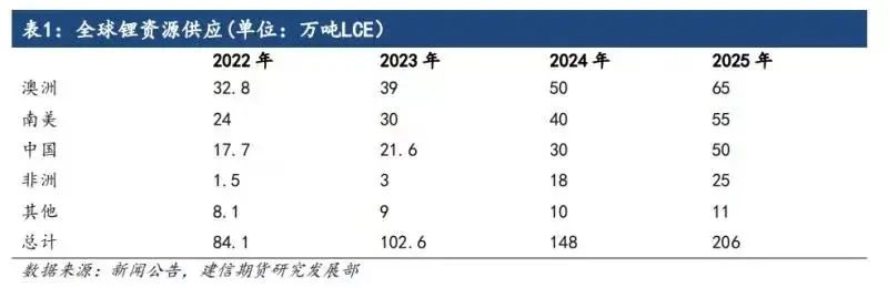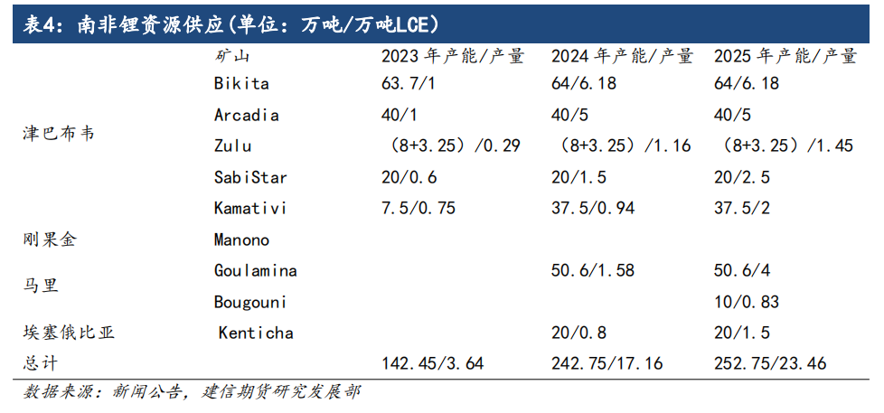 2023年非洲锂矿投产主要集中在津巴布韦,2024-2025年刚果金、马里、埃塞俄比亚还有锂矿山陆续投产,其中刚果金的马诺诺大型锂矿的投产将带动非洲锂矿产能大幅增加。整体上2023年非洲锂矿产量预计将达到3.64万吨LCE,2024-2025年产量预计将分别增加至17.16万吨、23.46万吨;
