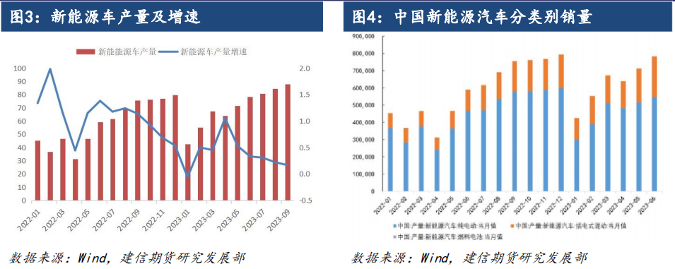 碳酸锂终端需求主要是集中在新能源车和储能领域,由于2022年中国新能源车需求的快速增长带来了产业链上下游的产能扩张,2023年正极材料厂、电芯厂产能全面过剩,这种过剩状态在2024年还将继续存在,终端领域降本压力将继续向电芯厂和正极厂传导,产业链中游超额利润被压缩,而且中游领域受新能能源车需求放缓压力影响,其产量扩张受限。2024年中国新能源车增速换挡海外市场扩张将接力,预计2024年全球新能源车销量增速将降至30%;储能市场规模虽在政策推动下进入快速扩张,但绝对量仍偏小,2024-2025年储能市场对碳酸锂需求拉动有限。