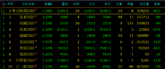 早盘集运指数期货大幅波动,跌破1300点,此前一度涨近5%,据国投安信期货研报指出,截至上周末,亚洲至远东航线的集装箱船已基本开始绕行好望角。各航司也调高运费并收取附加费,如绕行附加费、旺季附加费等。今日盘后将公布新一期SCFIS,因其反映的是上周离港船舶的结算价,相关舱位成交普遍在绕行之前,事件引发的运价上调对其影响有限,预计指数涨幅有限。目前各合约已连续大幅上行,建议投资者理性投资,注意风险。