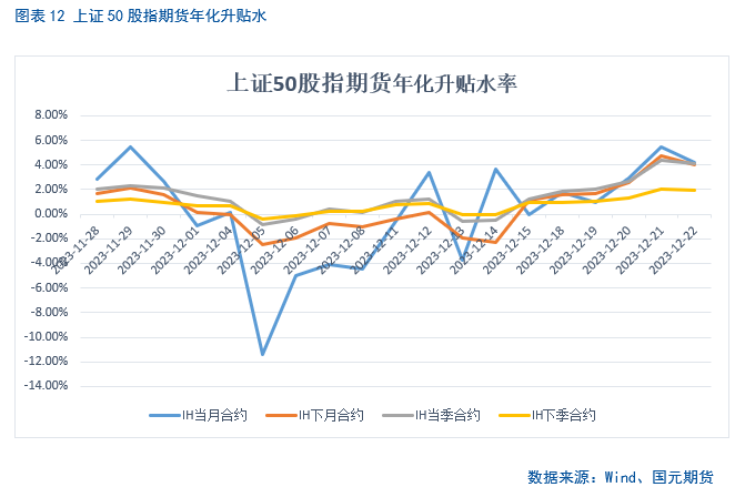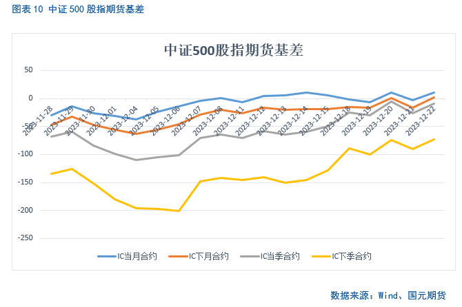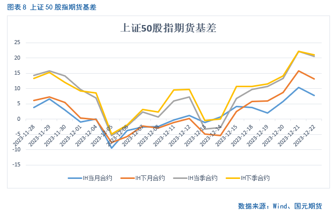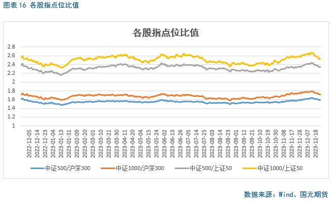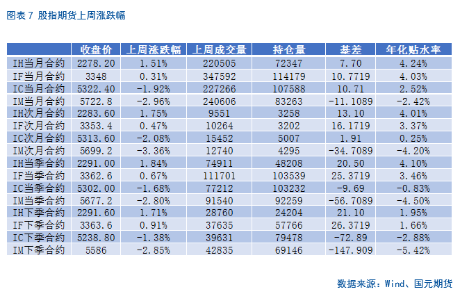 上周四大股指涨跌不一,上证50指数逆势走高。合约成交量较此前一周下降超20%。期货合约年化升贴水率整体回升,IC近月合约转为升水。期现套利目前空间较小,投资者可继续等待机会。IM/IH以及IC/IH上周走低,跨品种套利方面,投资者可暂时空仓。目前IC以及IM贴水较深,股票多头策略可使用股指期货进行替代。