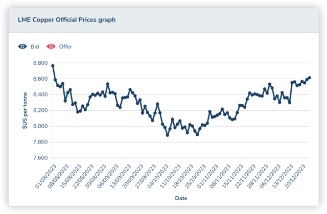 随着市场对美联储明年降息的预期高涨,以及潜在的供应危机,期铜价格升至8月份以来的最高点。