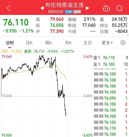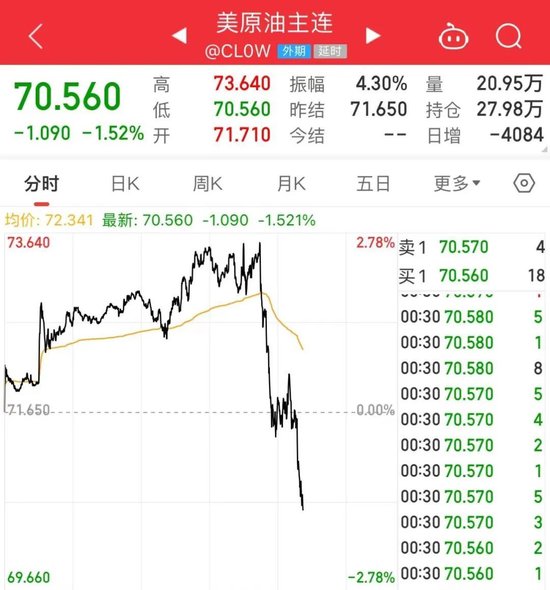 商品方面,国际油价盘中大跳水,美油、布油从上涨超2%转为跌超1%。