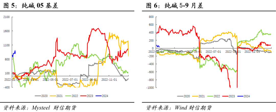 随着商品前期普跌,玻璃、纯碱连续减仓下行,盘面双双回到贴水状态,远月静态估值短期不高。