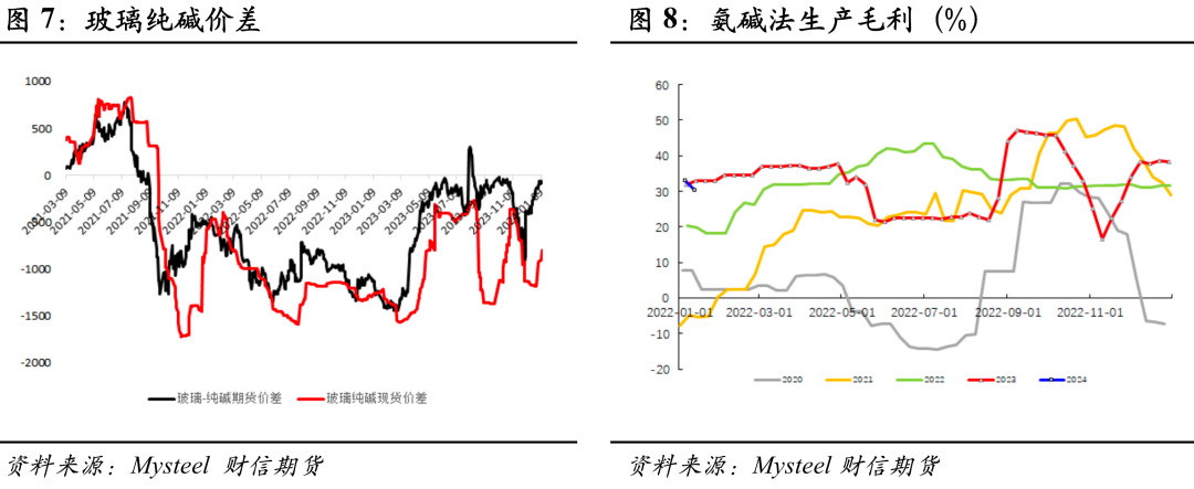 纯碱方面,截至2024年1月11日,沙河重碱送到2250-2300(-150),05合约基差438,5-9价差28。本周,氨碱法纯碱理论利润764.52元/吨,联碱法纯碱理论利润(双吨)为1073.10元/吨。