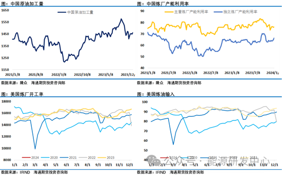站在年初这个时点对全年供需演绎具有很大变数,尤其是当前这个阶段,一方面市场要关注欧佩克+减产执行情况,同时还要关注中东地缘因素对供应端的扰动。前期红海事件对石油运输影响相对有限,但随着美国空袭也门之后,胡塞武装警告也门的回应即将到来。越来越多油轮公司暂停了红海航线,伊朗扣押油轮之后,美国跟伊朗之间的摩擦也有升温迹象,如果事件演绎扩散到中东霍尔木兹海峡运输上,无疑会引发市场担忧。后续密切关注地缘问题是否会对供应安全形成更大冲击,这成为目前市场高度关注的风险点。