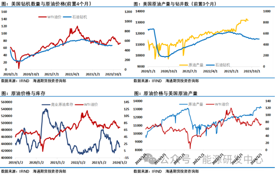 供应端方面预计2024年美国原油产量为1321万桶/日,将增加29万桶/日,此前预期为1311万桶/日。预计2025年美国原油产量将增加23万桶/日,达到1344万桶/日。这两项都将创下新纪录。在油井效率提高的推动下,未来两年产量将继续增长。然而,由于活跃钻机数量减少,增长放缓。预计2024年欧佩克+原油产量将下降60万桶/日。随着减产措施到期,欧佩克+2025年原油产量将增加70万桶/日。根据预测,2025年圭亚那的石油产量将从2023年的40万桶/日增。非欧佩克+国家的产量增长将从2023年的250万桶/日下降至2024年的110万桶/日,并在2025年进一步降至80万桶/日。