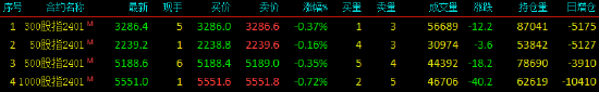 2024年1月12日,股指期货小幅下挫,沪深300股指期货(IF)主力合约跌0.37%,上证50股指期货(IH)主力合约跌0.16%,中证500股指期货(IC)主力合约跌0.35%,中证1000股指期货(IM)主力合约跌0.72%。