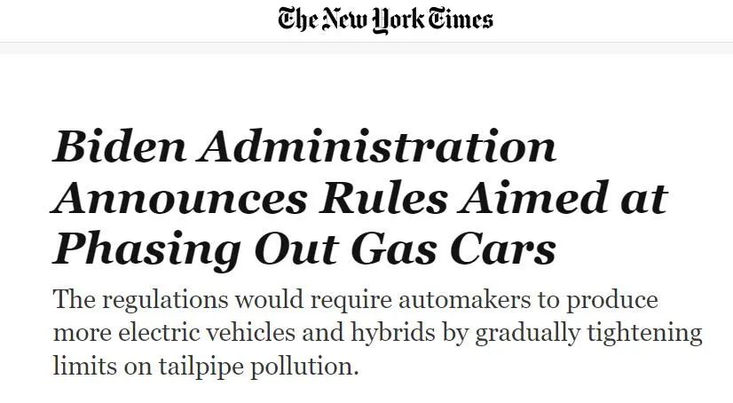昨夜,据报道,拜登政府周三采取行动,实施严格的尾气排放限制,这将迫使汽车制造商迅速提高电池电动和插电式混动车型的销量。根据规定,到2032年,汽车尾气排放的二氧化碳上限为每英里85克,低于2027年的每英里170克。到2026年,这些要求可能会使车辆的平均排放量较现有标准减少近一半。相对于现行标准,该措施还对煤烟和致雾污染设置了限制。