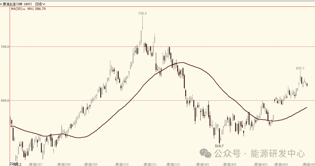 油价周四继续惯性回落,小幅收跌。国内SC原油继续弱于欧美市场。最近油价的下跌属于正常的技术性修复行情,本周供需层面消息较为平淡,全球核心国家公布系列宏观数据对金融市场有一定影响,对投资者预期有扰动,总体来看随着美联储降息时间延迟,国际汇率市场美元走强的同时,风险资产回落为主,风险偏好有所降温,原油在一定程度也受到了影响。