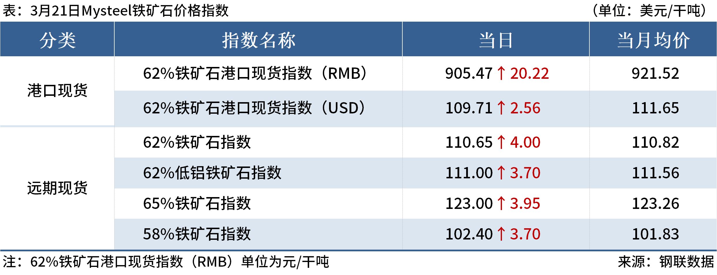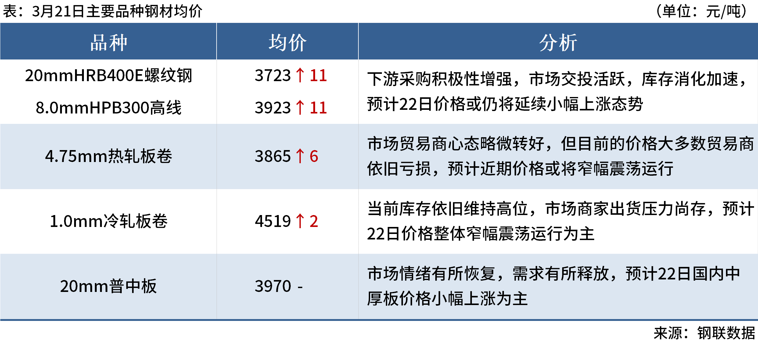 ◎3月21日,全国主港铁矿石成交117.30万吨,环比增22.3%;237家主流贸易商建筑钢材成交16.79万吨,环比增18%。