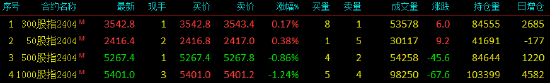 2024年3月26日,股指期货涨跌不一,沪深300股指期货(IF)主力合约涨0.17%,上证50股指期货(IH)主力合约涨0.38%,中证500股指期货(IC)主力合约跌0.86%,中证1000股指期货(IM)主力合约跌1.24%。