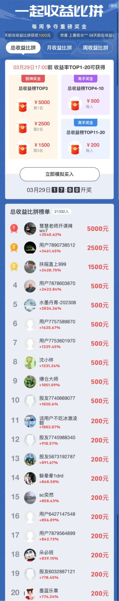 第二名:“用户7890738512”以3461%的收益率获得2500元奖金