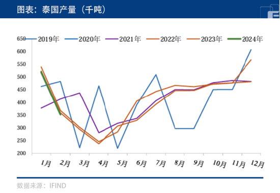 从供给角度来看,2023年出现了减产情况。而在2024年1月至2月,泰国供应旺季却表现不佳,而今年三四月份又处于全球供应的低谷。供应方面的利好因素不断叠加。从更宏观的供给情况来看,产能周期出现了转变,从持续扩张转向了稳定。由于供应端的利好因素属于缓慢变化的因素,前期的利好因素会在某个时间点得到释放,但很难确定这些利好因素会在未来的哪个时间点再次爆发,这为空头提供了机会。