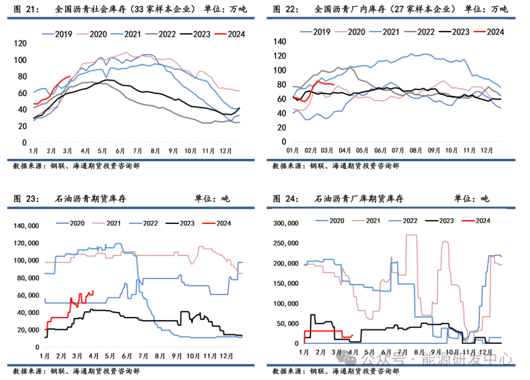 本周厂库出现去库,社库持续累库。现货端,3月29日当周,国内27家样本企业沥青厂内库存为79.3万吨,环比上周81.1万吨回落2%;33家样本企业社会库存量为82万吨,环比上周80万吨增加3%。其中山东70家样本企业沥青社会库存录得74.9万吨,环比上周72.9万吨增加3%。期货端,3月29日石油沥青期货库存为65170吨,厂内库存为20320吨,总期货库存为85490吨.环比上周76620有所增加。需求略微改善厂库出现去库迹象,但整体高于去年同期水平。社库连续累库,同样高于去年同期水平,整体市场接货情绪不高。
