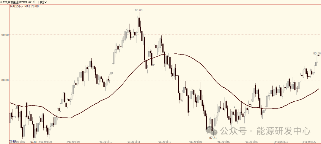【2】美油期货自去年10月来首次触及85美元