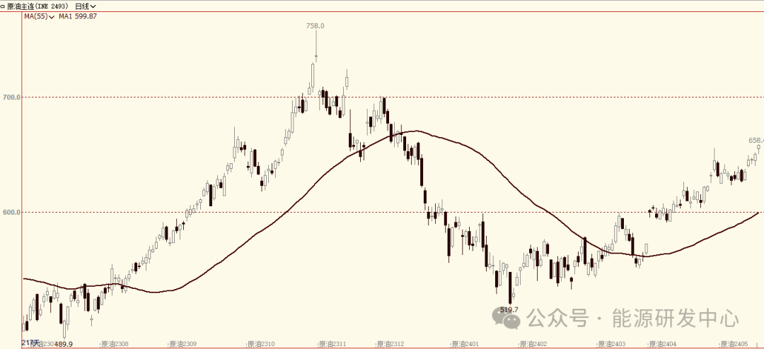 周二油价继续冲高刷新年内高点,随着市场传出乌克兰无人机深入俄领土袭击了俄罗斯日产能达30万桶的最大、最先进的炼油厂之一Taneco炼油厂,引爆了市场情绪,在国内期货市场下午收盘后油价开始大幅拉升,WTI原油自2023年10月之后重回85美元,布伦特原油同样刷新了6个月来新高,距离90美元咫尺之遥,SC原油同样大幅上涨至658元。近期一系列的扰动题材推升了市场对供应端紧张的担忧,月差结构同步快速走强,供应吃紧成为当前市场交易的最核心逻辑。